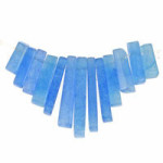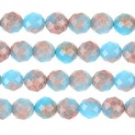 Our hero bead was this blue and amber glass bead (A013249). We pulled beads with hues of blue, light blue, and amber as well as some bronze Czech fire polish beads. Using gold eyepins, make a simple loop with the glass and Czech beads. We made enough eyepin dangles until we ran out of the bronze Czech fire polish beads. Plus, we made a handful of Black Diamond Chinese crystal dangles.