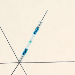 Step One: Slide beads onto a peg. Keep a 1/4″ peg end. Cut with memory wire cutters, if neccessary.