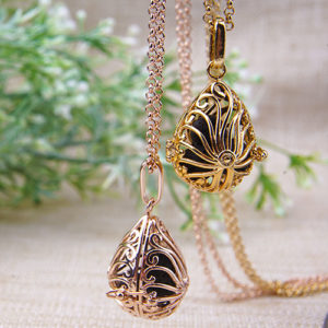 - Unclasp your necklace chain and slide chain through top loop of your instant pendant. Clasp necklace chain.