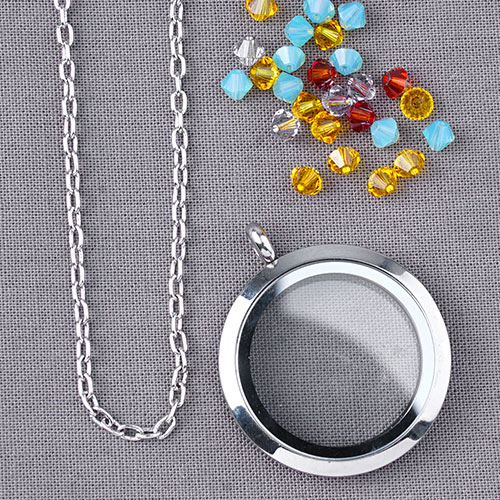 - Open small jump ring and slide on charm and loop of eyepin. Close jump ring.