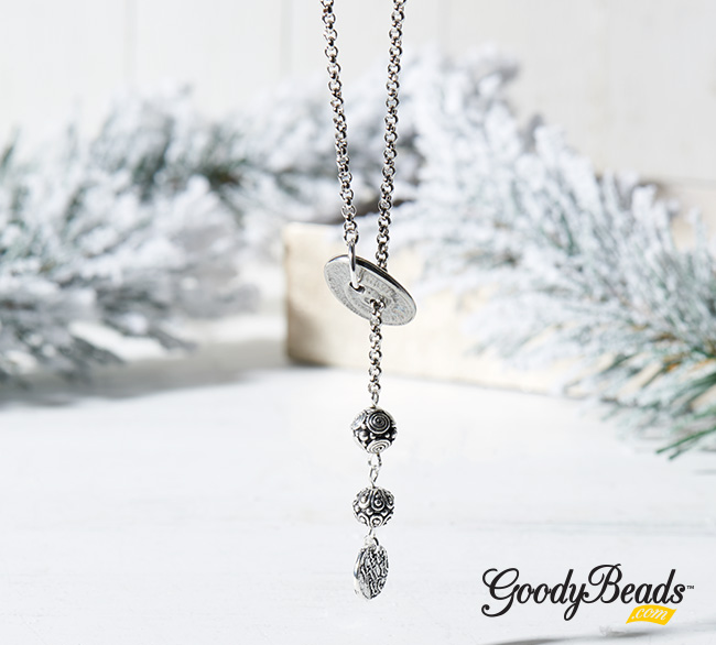 Design this lariat necklace with a button connecting your chain around. Dangle your ends with a sequence of TierraCast bead links and/or charm.