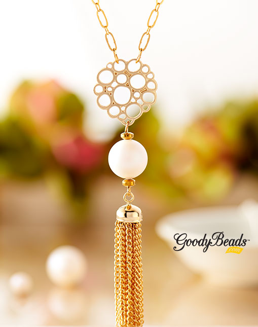 Any outdoor music festivals for you this summer? Make sure to pack your flashy jewelry like this sassy gold necklace, made with Swarovski Pearl and chain tassel.