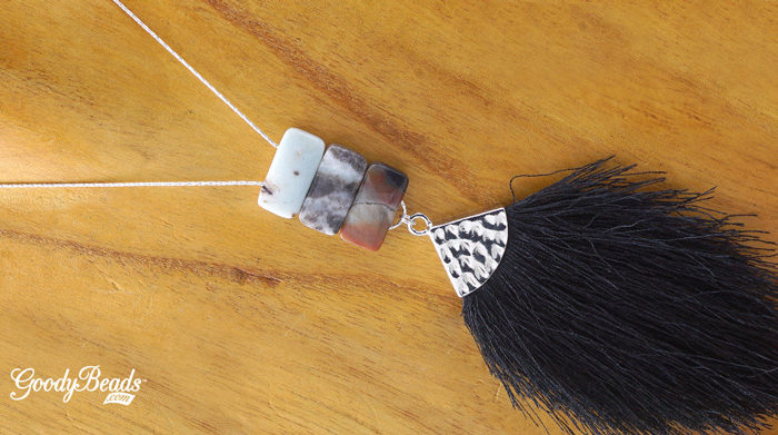 Black Gold Amazonite Tassel Necklace with Beading Chain