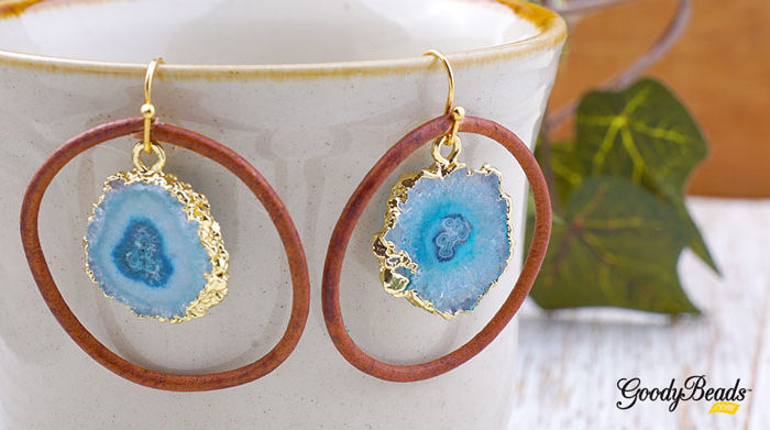 DIY Hoop Earrings with Round Leather and Agate Pendant