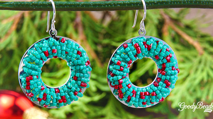 Beadable Holiday Wreath Earring with Tutorial