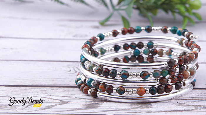 So Vang’s Teal Brown Impression Jasper Wrap Bracelet