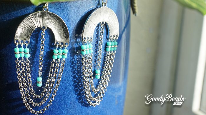 DIY Half Circle Chain Earrings with Turquoise Seed Beads