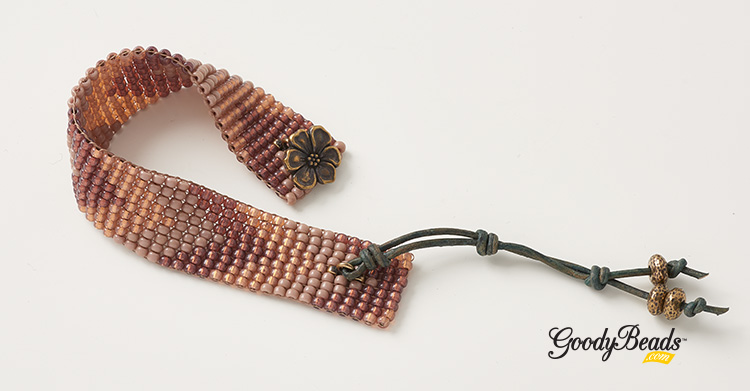 The DIY Lavendar Garden Loomed Bracelet comes from our friends at TierraCast. This bracelet uses a bead loom and one of their newest products, The Stitch-In Link Connector.