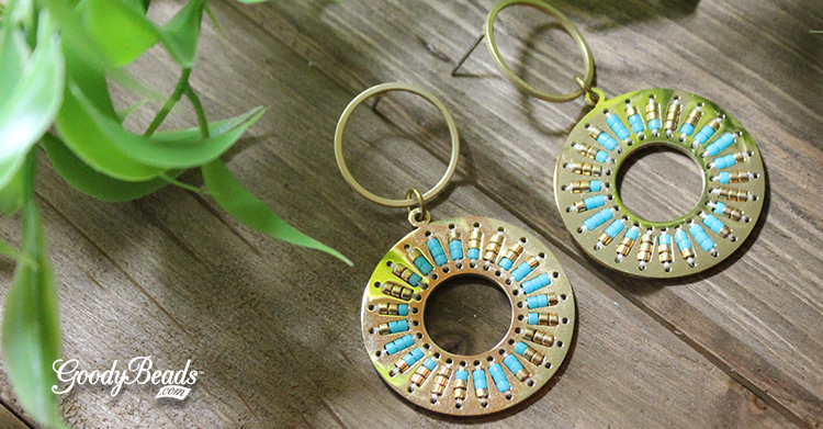 Today’s DIY features a Beadable Pendant sewn with Miyuki Delica beads and hung on a hoop post earring. Think of all different color ways you can design with this earring.