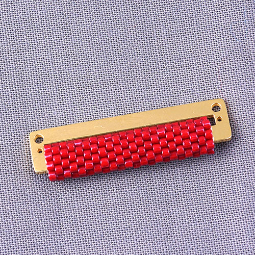 We are in love with our beadable findings! And with a simple knowledge of peyote-stitching Miyuki 11/0 Delicas, create a tube, attached through the Beadable Bar Pendant, to make a minimalistic neckalce.