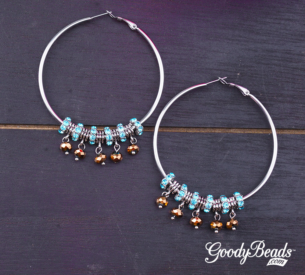 - Open small jump ring, slide on large jump ring from Step 6 and through loop of ear wire. Close jump ring.