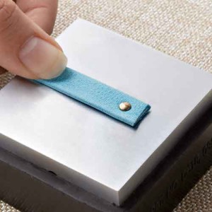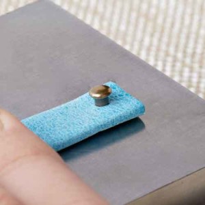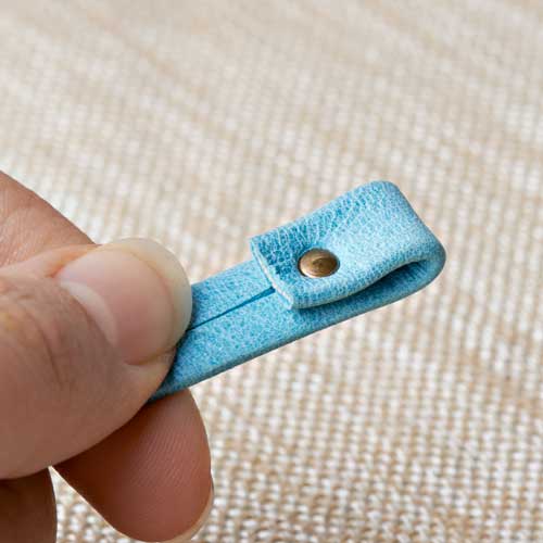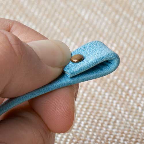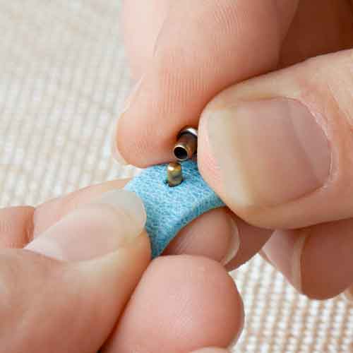 Insert bottom rivet piece through the backside of the leather and put cap piece on top.