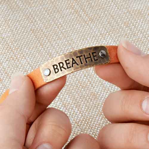 Picture Jasper is about peace and relaxation. It’s why we included some Picture Jasper dangle charms in this bracelet to help calm your mind and soul for 2016. We’ve also added a few Chinese crystal dangle charms for added sparkle. We’ve used metal blanks and stamped words to help encourage the mind and soul to “take chances” and “be patient,” as wells as to just “breathe,” “heal” and to “laugh more” in the New Year.