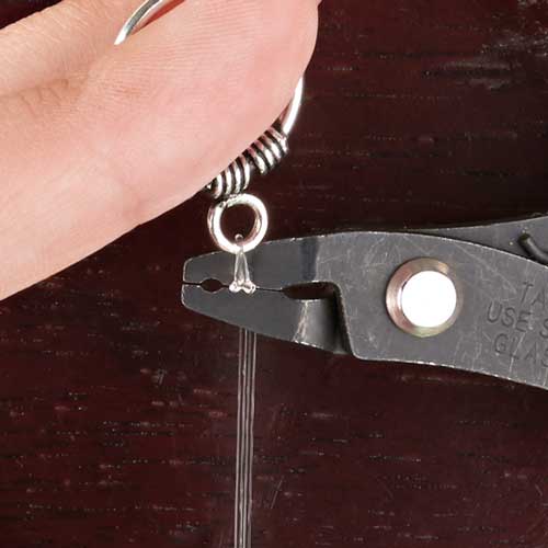 Place the crimp tube into the crimping pliers’ notch closest to the handle and squeeze the pliers until you feel the crimp tube squish into a little taco shape.