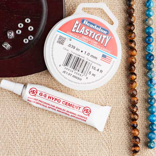 Step 1: Gather your elastic, beads, spacers, and adhesive.