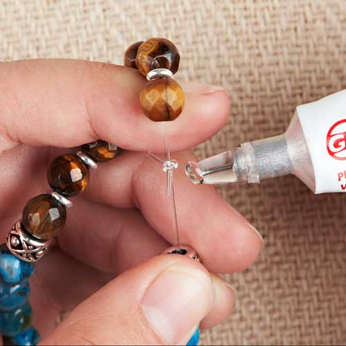 Tighten leather knots: If your leather cord knots are loosening, add a small dab of fast-drying glue or Hypo-Cement to knot(s) for tighter holds.