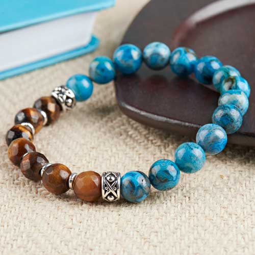 Elastic bracelets can be as simple as this Onyx Stone Bracelet. What makes this bracelet more grown up is the quality beads used for your projects. These Dakota Stone Sardonyx Gemstone Beads have a smooth, round shape with natural white lines. They are also cool to the touch so you know they are high-quality gemstones.