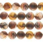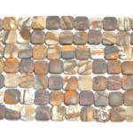 The process to matte-finish a bead is counter intuitive and actually requires more steps than the traditional polished stone. The stone bead is put through all the normal steps of a polished bead; cut, drilled polished, then it goes back into the tumbler with a fine grit powder, water and additional tiny stones and tumbled to the desired look. Each stone type requires a different amount of time in the tumbler depending on the material’s hardness and characteristics. Harder materials can require up to 2 hours in the tumbler and occasionally it takes multiple tumbles with different various-sized grit powder.”