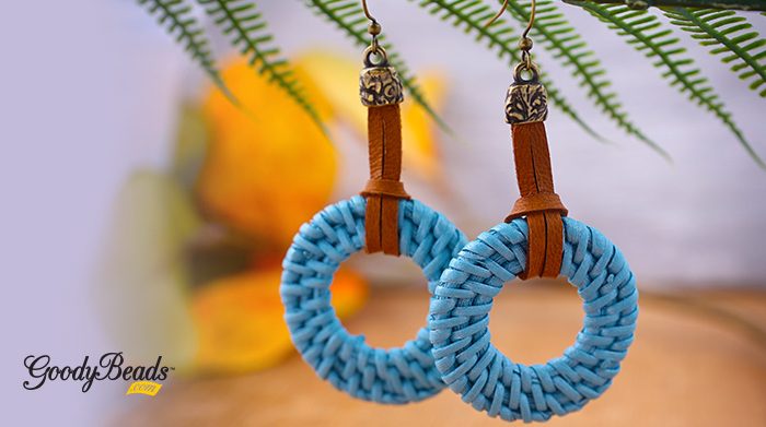 DIY Blue-Blue Straw Earrings with Deerskin Leather Lace