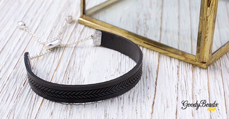 Leather Band Bracelet with Adjustable Sliding Clasp