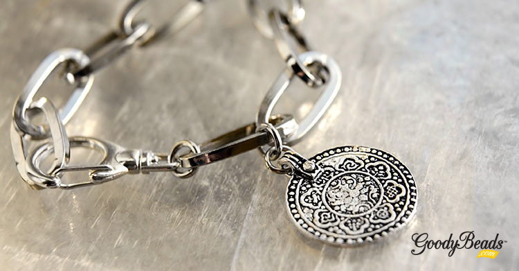 - Open another jump ring, slide in charm and close jump ring.