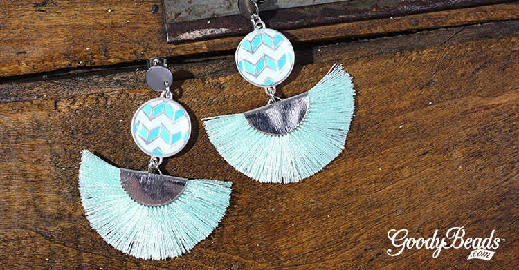 - Open jump ring, slide on tassel and loop on enamel connector. Close jump ring.