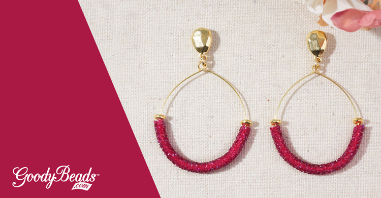 Today’s tutorial features one of our newer products 55mm Swarovski® Ultra Fine Rocks Tube beads. These Ultra Fine Rocks are longer in length and thinner than our usual Fine Rocks Tube. Plus, they are also a little more pliable to wrap around memory wire, which is what we’ve done in our earrings tutorial!