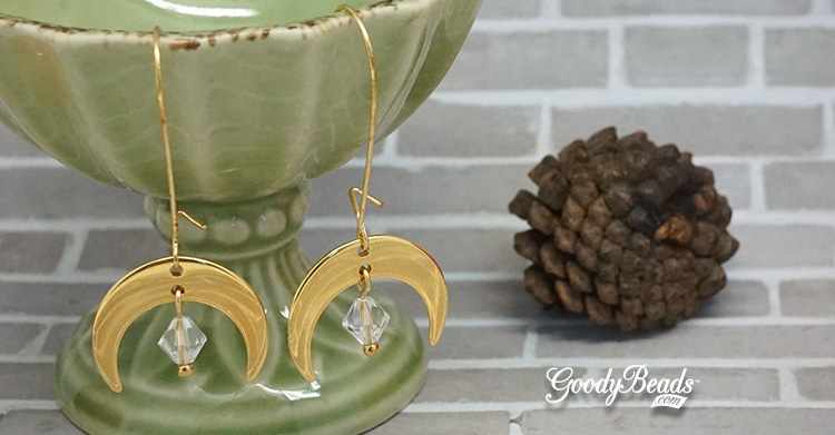 Today’s DIY hanging crescent earrings are gorgeous because they contain fun kidney shaped earring findings and popular crescent charms, topped off with Swarovski crystals. You can also make this in a silver version too.