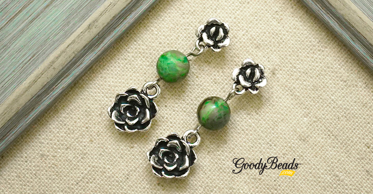 Make these cute succulent earrings using TierraCast succulent findings from their Renewal Collection and Crazy Lace Agate gemstones from Dakota Stones.
