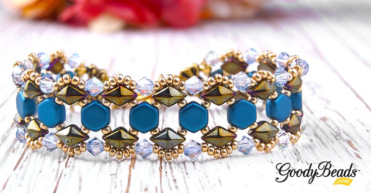 We have a NEW pattern for you using some of TierraCast’s Oasis Stitch-In Two-Sided Link in their recent Finishing Touches launch, Czech Honeycomb, Czech DiamonDuo, seed beads and 4mm crystals from Swarovski®.