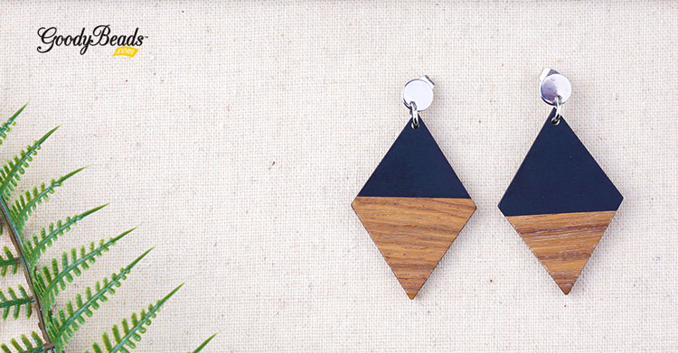 - Open jump ring and slide on wood/resin charm and through hole of post earrings. Close jump ring.