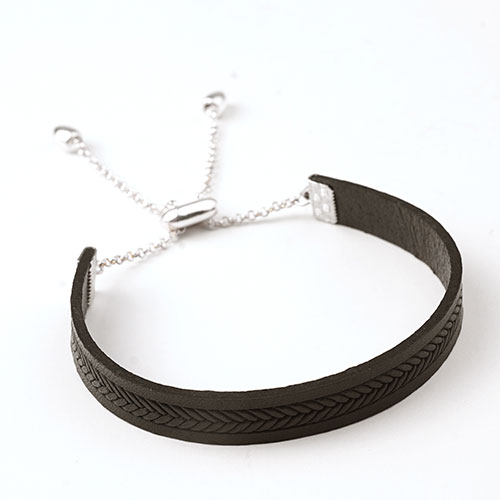 Leather Band Bracelet with Adjustable Sliding Clasp